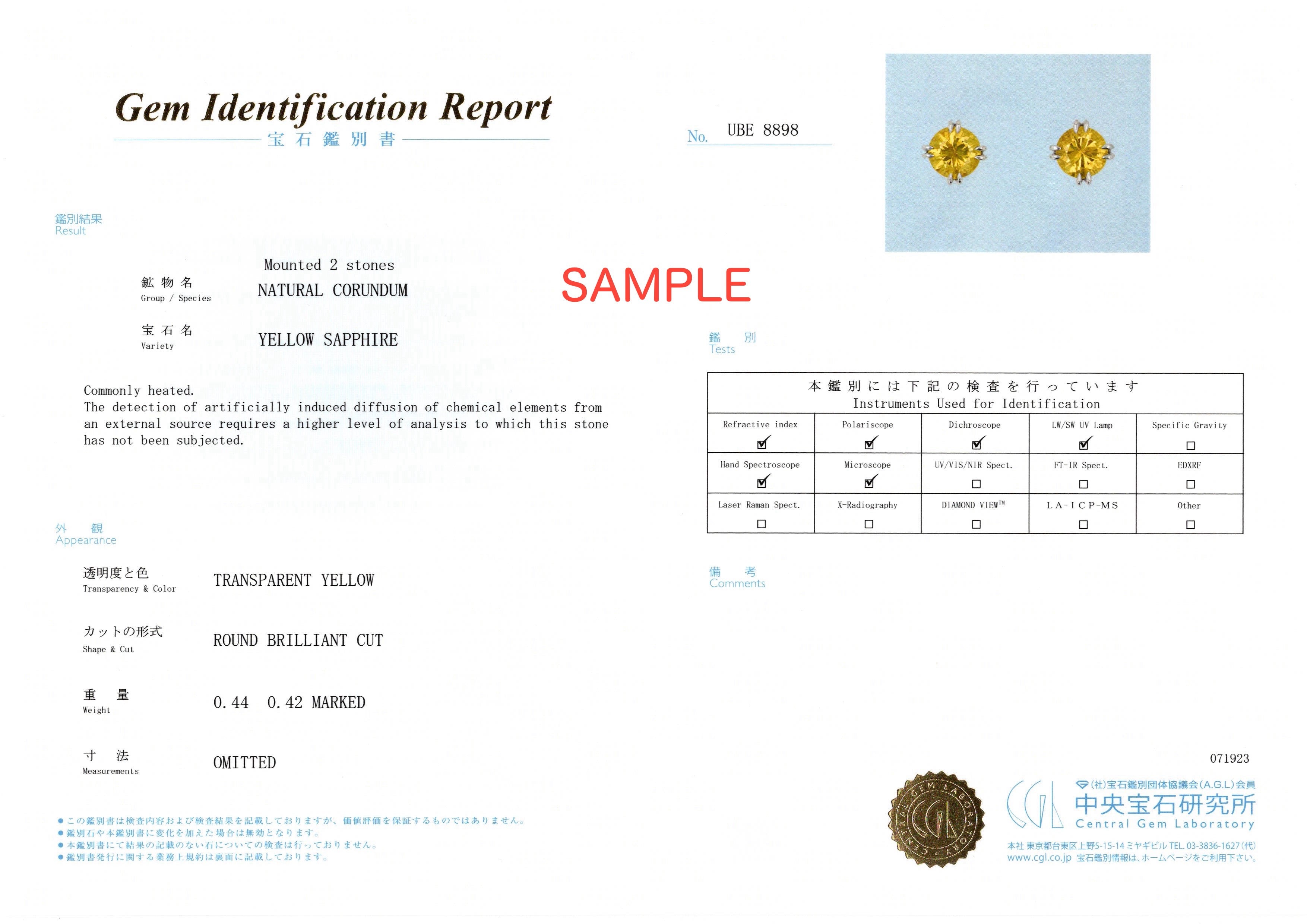 ・イエローサファイア(ラウンドブリリアントカット)0.8ct