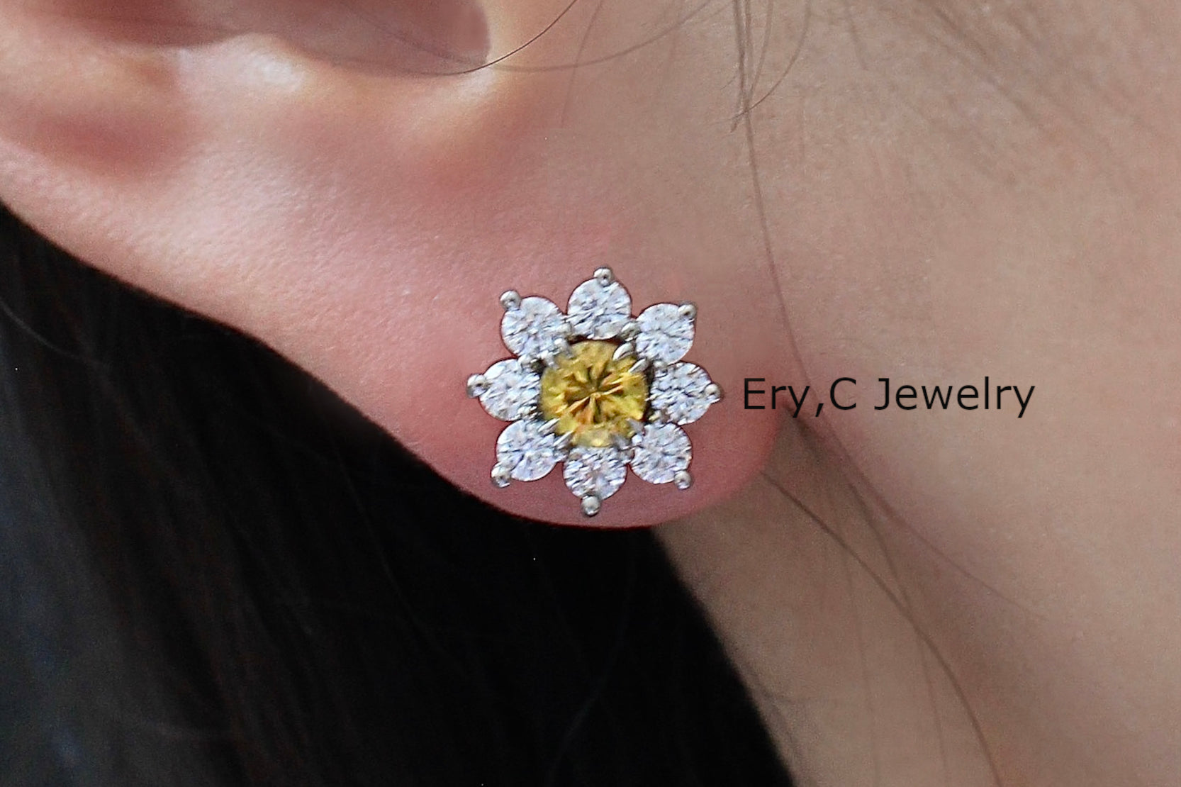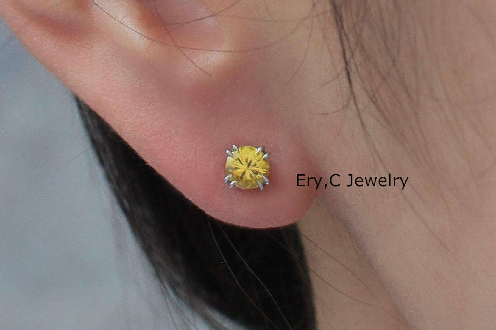 イエローサファイア スタッドピアス / ダイヤモンド ヘイロー ピアスジャケット 2Wayピアス